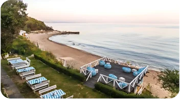 В комплекса са изградени три вили в средиземноморски стил, както и няколко къщички с апартаменти и стаи. Ресторантът, разположен над плажа, е известен в региона с богатия си асортимент и отличните морски специалитети.